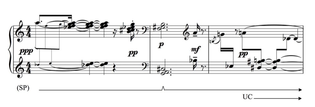 In the 2015 performance the pianist understandably treated the passage for finger cymbals as indicative/suggestive, and delivered a highly sensitive but improvised interpretation (See score example 3).