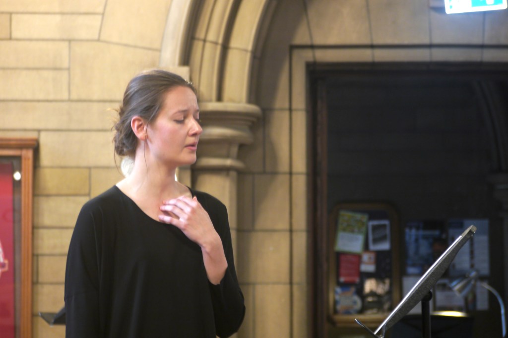 A crucial parameter influencing the performed outcome of this piece was the performers’ movement within the space. I did attend rehearsals with a proposal for how and where performers should go (for the singer this applied throughout the piece, and for the percussionist and pianist this applied to passages where they were not positioned at fixed stations). However, given that our attention in rehearsals required intensive focus on issues relating to synchronisation, I accepted that it was beyond the scope of what could be reasonably achieved in the time we had here to test specific plans for choreographed movement. This was entrusted to the discretion and freedom of the performers. As a general principle though, they sought to explore a variety of configurations (ie exploring the effects of situating players in different combinations of rooms). As will be noted below in my reflections on the 2015 performance, I suspect that some of the results that pleased me most in terms of layered acoustics would perhaps not have resulted had I imposed a more prescriptive plan.