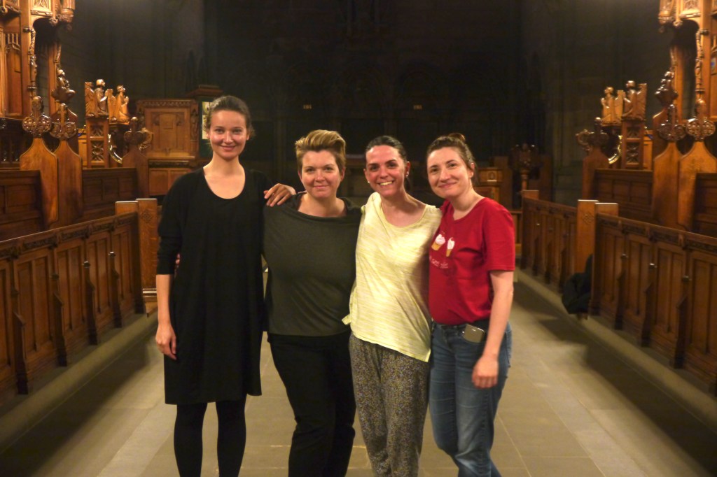 Of these options there was a clear consensus that the third option was most pleasing from a listener’s point of view. Based in the rotunda, an audience will hear the three different parts drifting mysteriously into this central space, mediated by its resonant acoustic. The second option seemed to be the least satisfying as a listener, due to partly to the drier acoustic but also for the reason that we were able to see each performer as she processed through our room in turn.