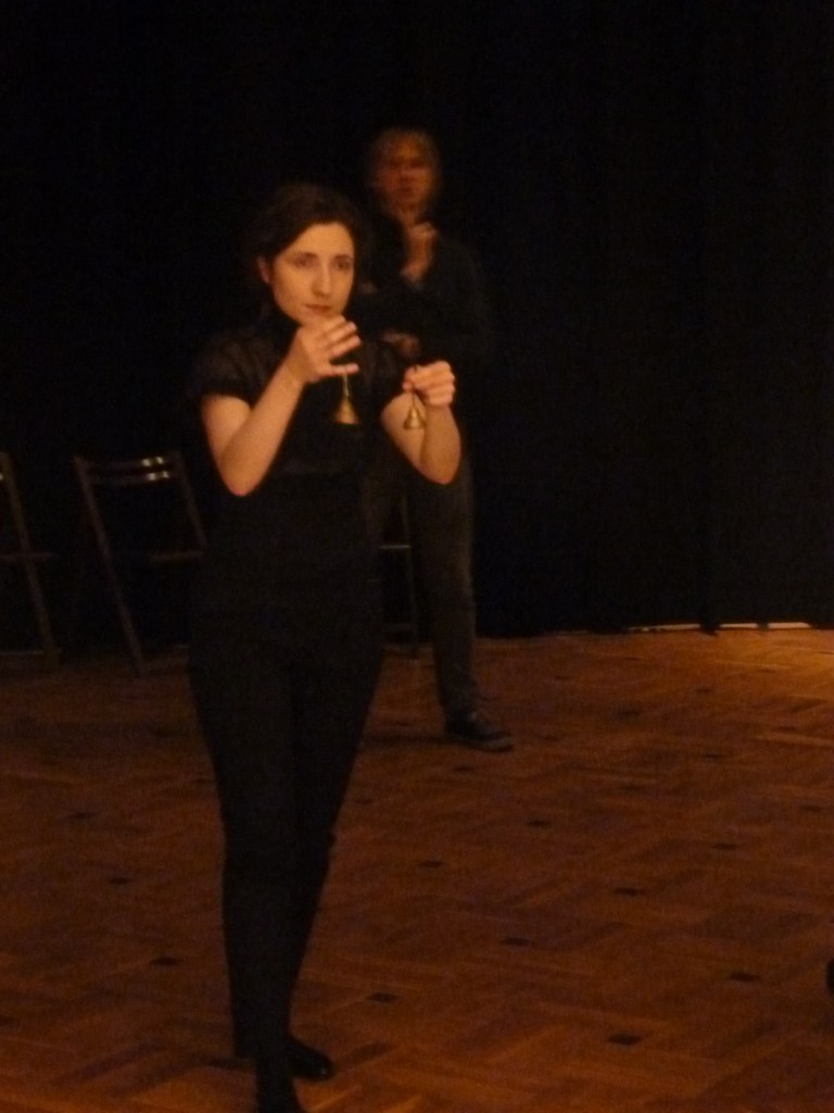 While they played and moved, Robert (sound engineer) and I tested various configurations in terms of positioning the audience in relation to the performers. We tested three different scenarios: